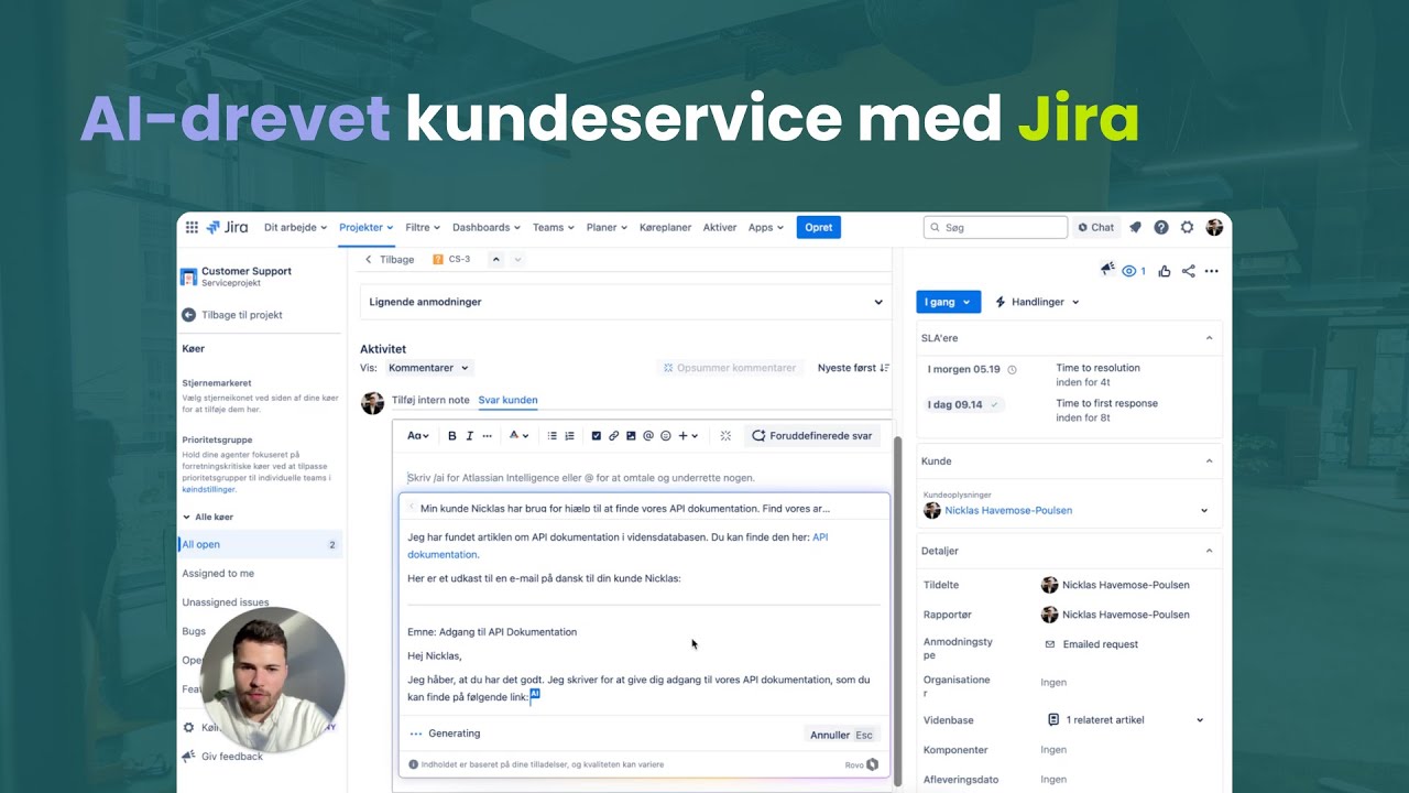 Har du eventuelle spørgsmål eller lyst til at høre mere om AI-drevet kundeservice i Jira Service Management, så ræk endelig ud til os.