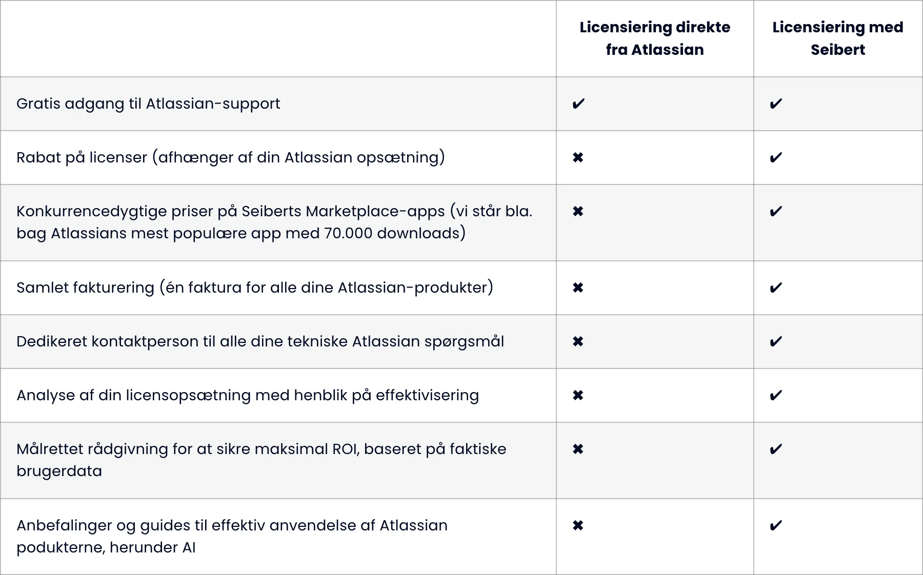 Først og fremmest, uanset om du køber gennem Seibert Solutions eller direkte fra Atlassian, vil du opretholde en direkte relation til Atlassian og indgå i Atlassian Customer Agreement. Denne aftale beskriver Atlassians forpligtelser og ansvar i forhold til support og rådgivning, så du kan få den nødvendige hjælp og vejledning til dine Atlassian-produkter direkte fra Atlassian.