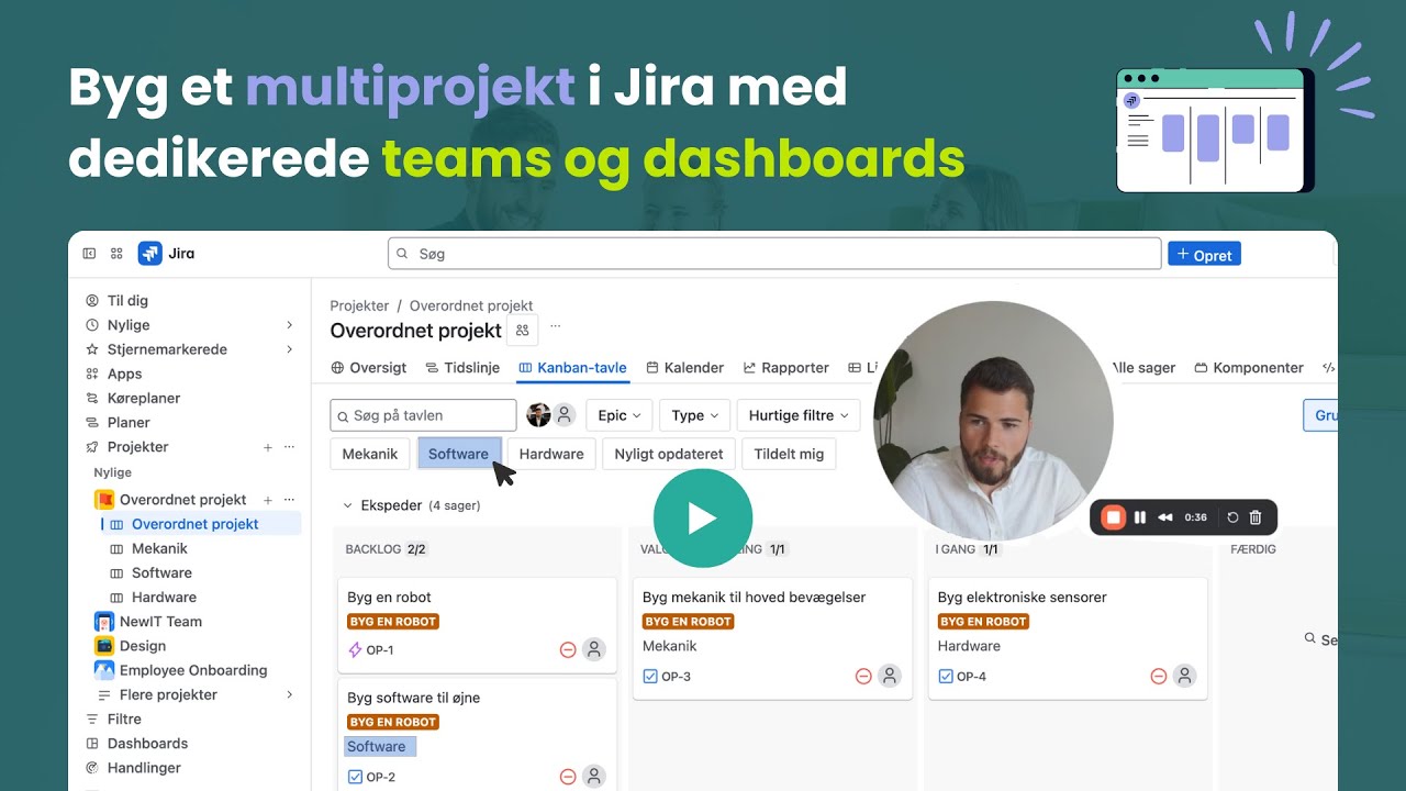 I videoen viser vi dig trin-for-trin, hvordan du kan opbygge et multiprojekt i Jira, tildele teams og skabe dashboards, der giver mening både for de enkelte teams og for det samlede projektlandskab.