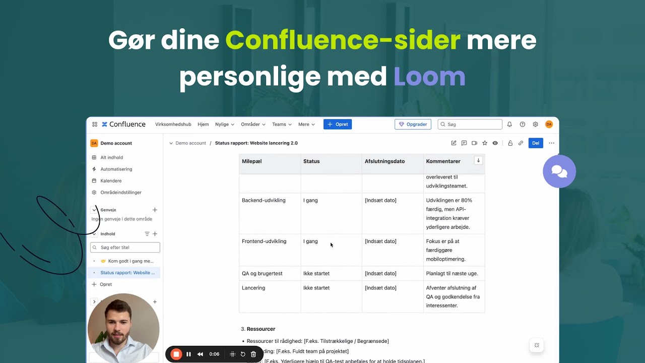 Confluence er et veludviklet værktøj til at organisere viden og samarbejde i teams, men lange sider fyldt med tekst kan nogle gange være overvældende og svære at forstå hurtigt. Her kommer Loom ind i billedet.