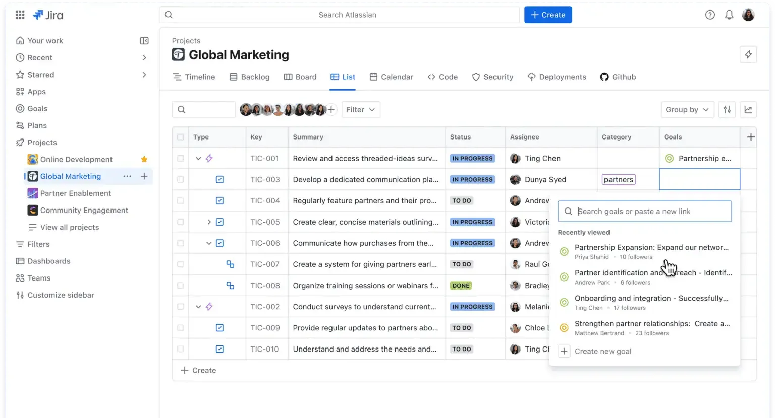 Mål i Jira kan tilføjes til ethvert projekt eller opgave. Denne nye funktion har til formål at øge gennemsigtigheden af mål på tværs af teams i Jira og gøre arbejdet knyttet til disse mål mere synligt. Dette skulle hjælpe teams med at skabe sammenhæng. I “Målkataloget”, en central oversigt, findes også en liste over alle virksomhedens mål og de teams, der arbejder på dem.