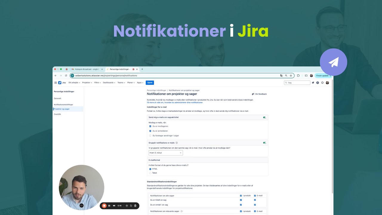 Vi har lavet en videoguide, der på 7 minutter, der viser dig, hvordan du indstiller dine Jira-notifikationer.