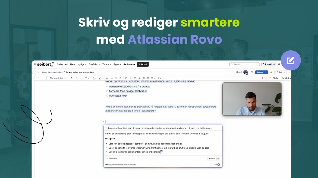 Til inspiration, har vi udarbejdet en video, der viser præcis, hvordan du kan skrive og redigere effektivt med hjælp fra Atlassian Rovo.